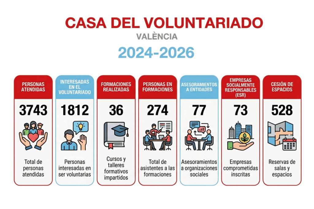 Cuando abrimos las puertas, hace ahora dos años, teníamos claro para qué queríamos estar aquí: acompañar, conectar y dar apoyo a todas las personas y entidades que hacen del voluntariado una forma de transformar Valencia. Lo que no sabíamos era la cantidad de historias que íbamos a tener el privilegio de cruzarnos por el camino.